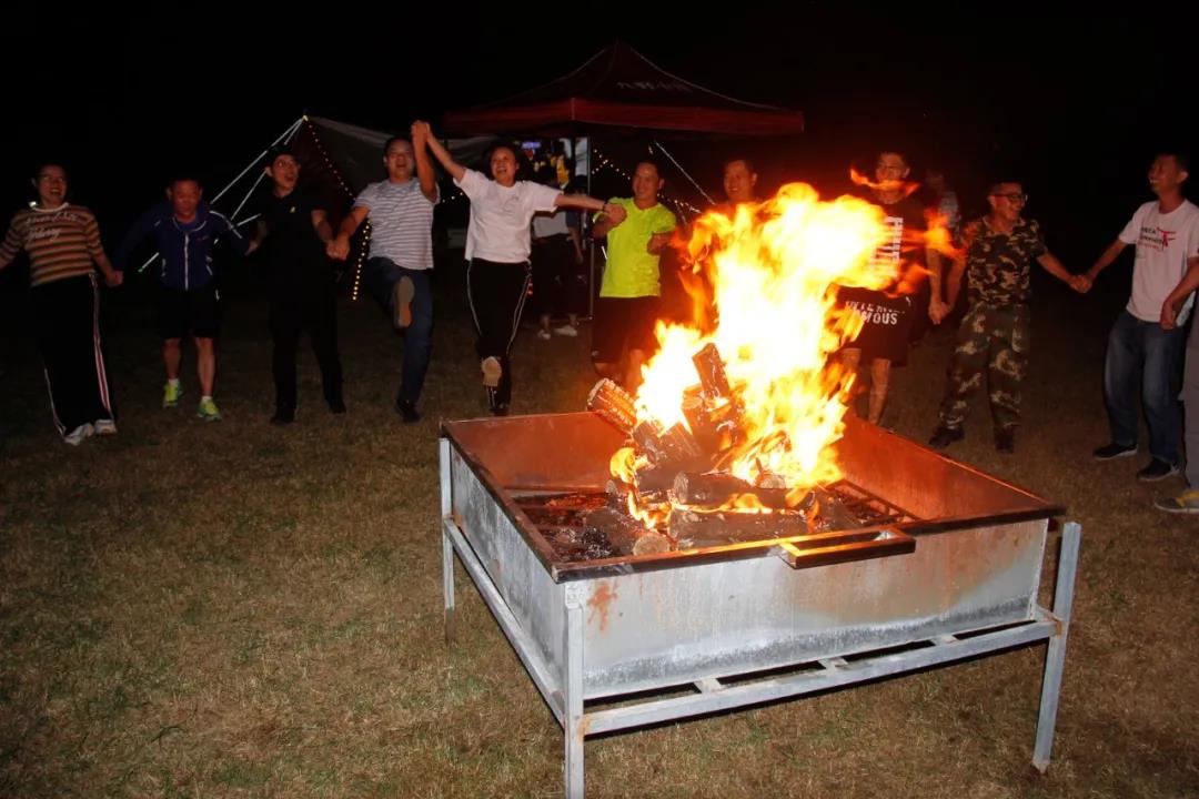 篝火燃起之時,繽紛的焰火把夜空點亮焰火打著風車般的旋子舞動著越舞越歡“大家一起來跳舞吧!”大家紛紛搭起前肩膀接成首尾相連的長龍,踏著“兔子舞”的音樂節拍一齊舞動,場面十分壯觀。